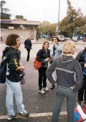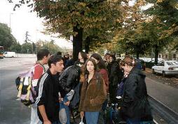 immagine di gruppo, alla stazione dei bus, in attesa dell'autobus che